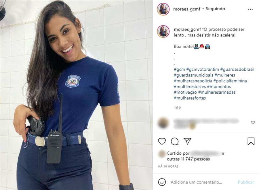Dos 35 agentes que compõem o efetivo da Guarda Civil Municipal (GCM) de Votorantim (SP), 12 são mulheres. Uma delas é a jovem Renata Moraes, de 27 anos, que coleciona mais de 80 mil seguidores nas redes sociais com posts sobre a rotina da corporação e a presença feminina na segurança pública.