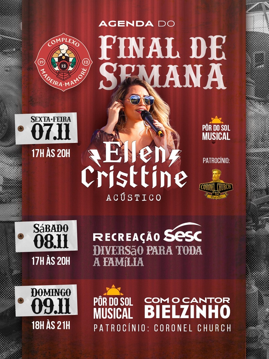 PORTO VELHO, RO - O Complexo da Estrada de Ferro Madeira-Mamoré será o ponto de encontro ideal para quem deseja aproveitar o fim de semana com boa música, atividades recreativas e o pôr do sol às margens do rio Madeira. A programação gratuita, que começa nesta sexta-feira (7) e segue até domingo (9), promete diversão para todas as idades e uma experiência especial para toda a população de Porto Velho.