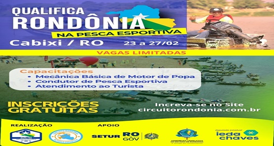 As capacitações são coordenadas pela Associação dos Condutores de Pesca Esportiva do Estado de Rondônia (ACPE/RO) e possuem vagas limitadas. Os interessados devem garantir a participação por meio do site www.circuitorondonia.com.br.