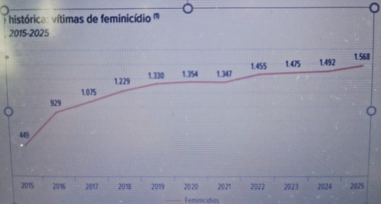 O Brasil registrou 1.568 vítimas de feminicídio em 2025, o equivalente a uma média de quatro mulheres mortas por dia. Os dados são do Fórum Brasileiro de Segurança Pública e apontam um crescimento de 4,7% em relação a 2024. Desde a sanção da Lei do Feminicídio 13.104/2015, ao menos 13.703 mulheres foram assassinadas no país por sua condição de gênero.