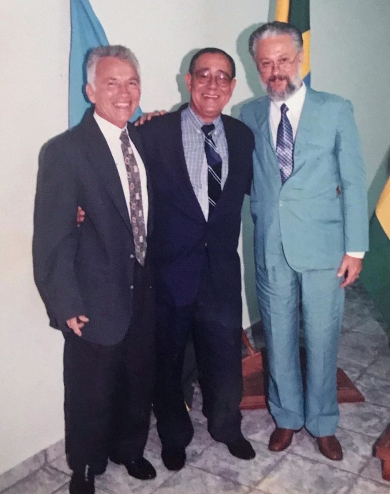Arnaldo (c), com o vereador Natalino de Campos (e) e o historiador Scarlecio Pires.