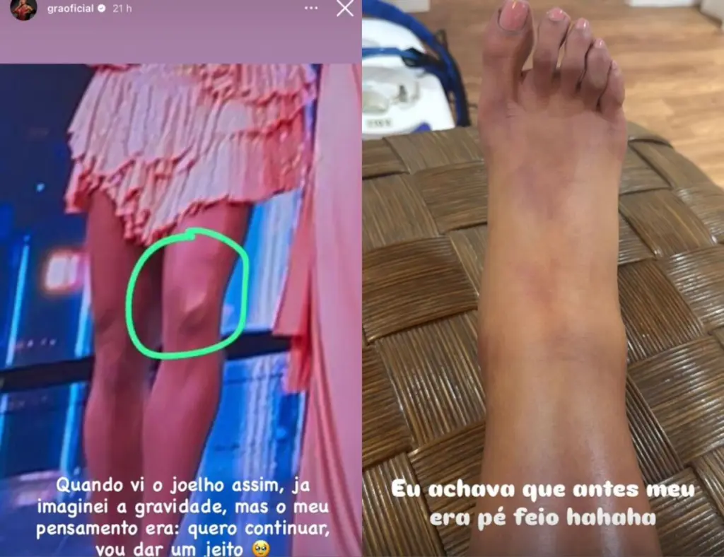 Porém, apesar da dor intensa, Gracyanne insistiu em continuar a apresentação. “Na hora, eu só pensava: ‘Preciso continuar o Dança, vou dar um jeito’. Todo mundo foi extremamente carinhoso. Foi um momento de dor, mas muito bonito. Mas imaginava que tivesse sido muito sério”, relembrou.