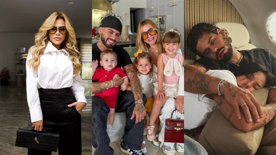 Logo pela manhã, Zé Felipe compartilhou um vídeo da namorada, Ana Castela, presenteando os filhos que teve com Virginia. A cantora surpreendeu as crianças com brinquedos e, no registro, Maria Alice, de 4 anos, e Maria Flor, de 3, agradecem à "tia Ana". O caçula da família, Zé Leonardo, tem 1 ano.