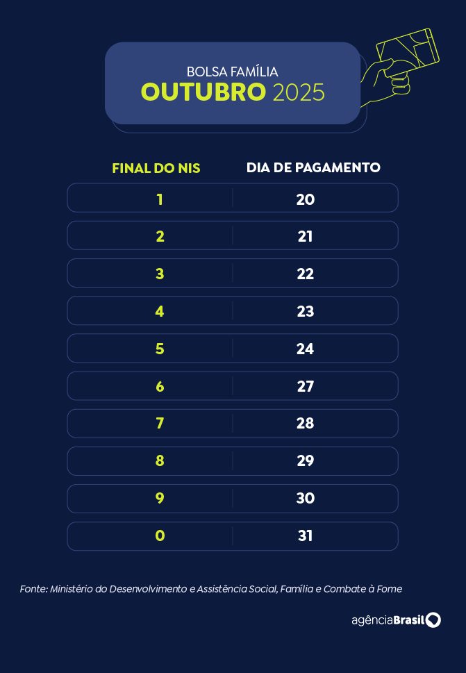 BRASIL: A Caixa Econômica Federal paga nesta sexta-feira (24) a parcela de outubro do Bolsa Família aos beneficiários com Número de Inscrição Social (NIS) de final 5.