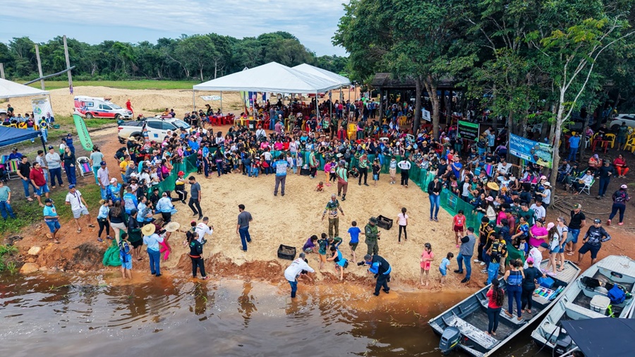 A soltura dos filhotes reúne moradores de diferentes comunidades do Vale do Guaporé, transformando o momento em um verdadeiro evento de educação ambiental. Crianças acompanham de perto o retorno dos filhotes de tartaruga ao rio, fortalecendo a conscientização sobre preservação e sustentabilidade.