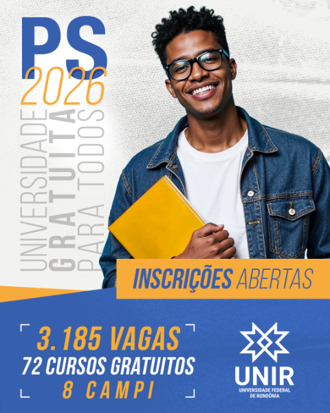 As inscrições são gratuitas e seguem abertas até a próxima quarta-feira, dia 21 de janeiro de 2026, exclusivamente pelo site https://sistemas.unir.br/discente..