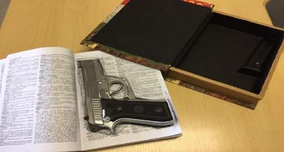 Prontamente, uma Guarnição de Rádio Patrulha foi até ao local e abordou 04 indivíduos que estavam sentados na frente da casa. Para a surpresa dos policiais, ao abrir um dicionário que estava em cima do banco, acabaram localizando um revólver calibre 38, municiado.