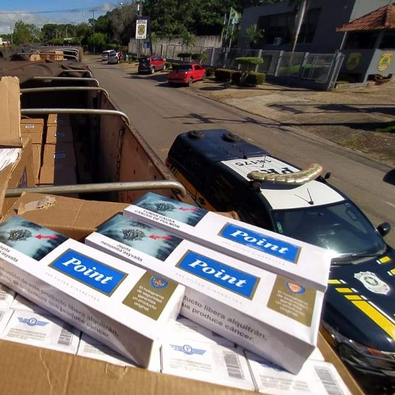 Durante fiscalização de enfrentamento ao crime em região de fronteira, policiais realizavam uma operação na BR 364 quando abordaram uma carreta bi-trem. O motorista afirmou que o veículo estava vazio, porém, durante a inspeção, foram encontradas 550 caixas de cigarro de origem estrangeira, que tem a comercialização proibida no Brasil.
