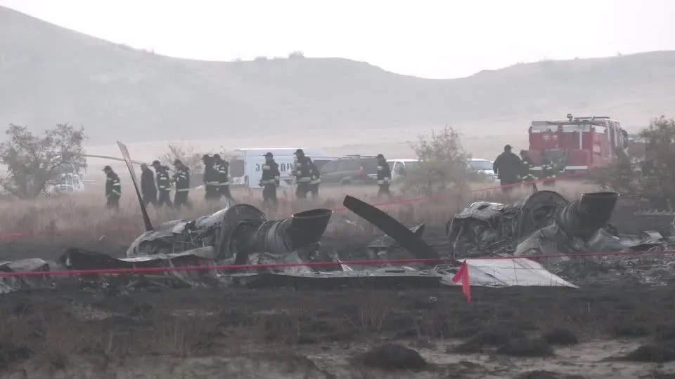 Imagens do local próximo à fronteira com o Azerbaijão mostraram ambulâncias, caminhões de bombeiros e veículos militares na área ao redor da fuselagem incendiada, com equipes de busca e resgate vasculhando o terreno.