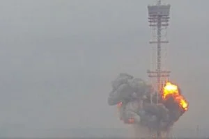 Veja o momento em que o míssil atinge a torre: