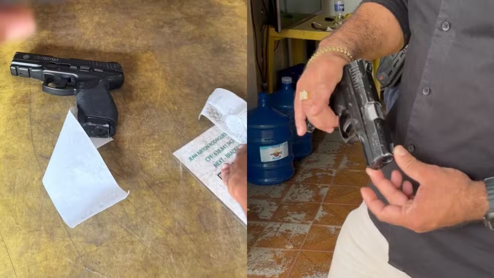 Segundo o boletim de ocorrência, após a verificação, os policiais constataram que o objeto que o homem carregava não era uma arma de fogo, mas um simulacro, objeto que imita uma pistola.