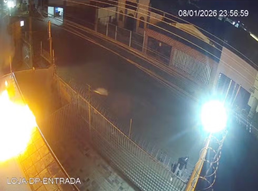PORTO VELHO, RO - Dois homens tentaram provocar um incêndio em uma empresa de tecnologia, na noite de quinta-feira (8), em Porto Velho. A ação foi registrada por câmeras de segurança instaladas no local e mostra o momento em que os suspeitos utilizam um coquetel molotov durante o ataque.