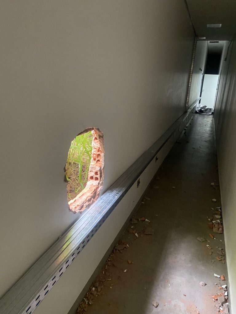 De acordo com informações da central de monitoramento do banco, indivíduos invadiram a agência e iniciaram o arrombamento da parede lateral, com acesso direto ao cofre. Diante da denúncia, equipes da PM se deslocaram imediatamente ao local, onde constataram barulhos e sinais claros de invasão.