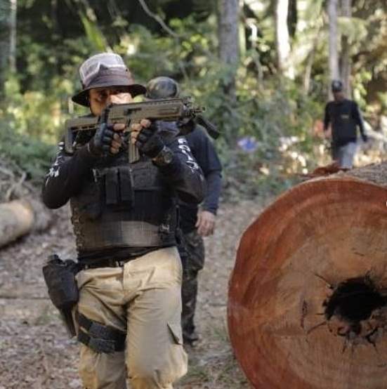 Após 10 horas de operação, os militares, policiais e servidores do ICMbio chegaram até a área com a grande quantidade(aproximadamente 700 metros cúbicos) de madeira já cortada e pronta para ser retirada ilegalmente da floresta.