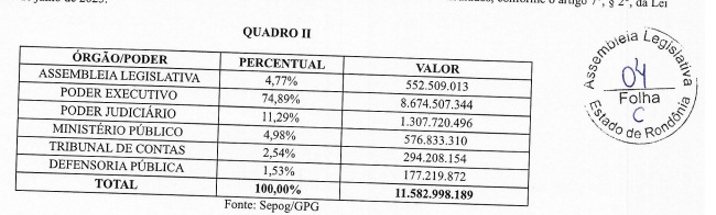 Para se ter uma ideia, o valor representa mais da metade do orçamento da Prefeitura de Porto Velho, que é de pouco mais de R$ 2 bilhões, e mais que o dobro do previsto para o município de Ji-Paraná, segunda maior cidade do Estado.