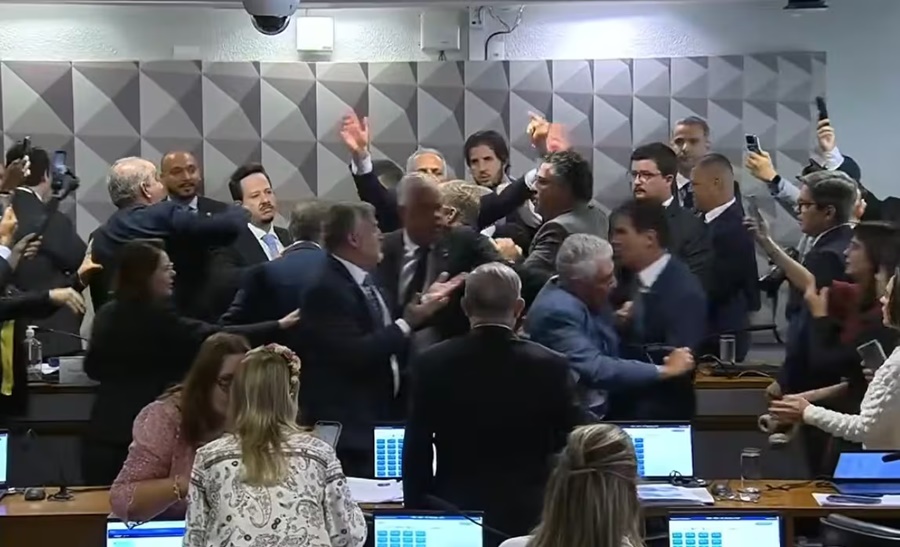 Depois de aprovados os requerimentos, parlamentares da ala do governo no Congresso foram para cima da mesa da presidência do colegiado. Houve uma confusão generalizada, com gritos, xingamentos e até agressão física. A sessão do colegiado chegou a ser suspensa por 15 minutos.